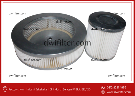 Filter udara merk Dw Filter ini berfungsi sebagai penyaring kotoran, partikel debu atau kotoran yang terdapat pada udara atau mesin dengan menggunakan media kertas sebagai media penyaring.