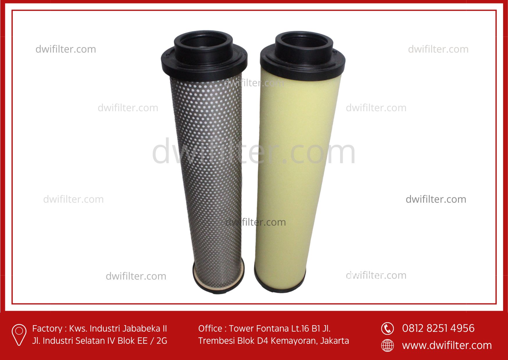 Filter element merk Dwi Filter merupakan pasangan yang terbaik dari Air Dryer dan seluruh merk lainnya karena filter element kami mempunyai media penyaringan yang luas sehingga memberikan perbedaan tekanan yang sangat kecil.